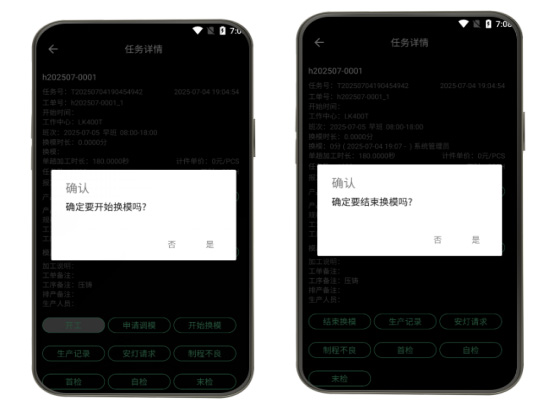 工業(yè)級移動終端部署實現(xiàn)全工序數(shù)字化閉環(huán):智能開工驗證(任務(wù)自動校驗/工藝參數(shù)確認(rèn)/電子作業(yè)指導(dǎo)書調(diào)取)與精準(zhǔn)報工管理(即時報工/不良品錄入/機(jī)器計數(shù))的無縫協(xié)同