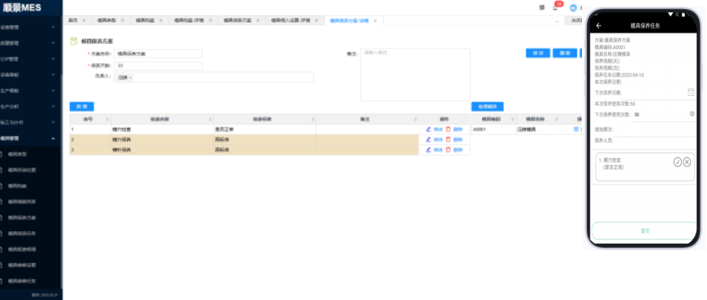順景MES系統實現模具全生命周期數字化管理,主要功能包括: