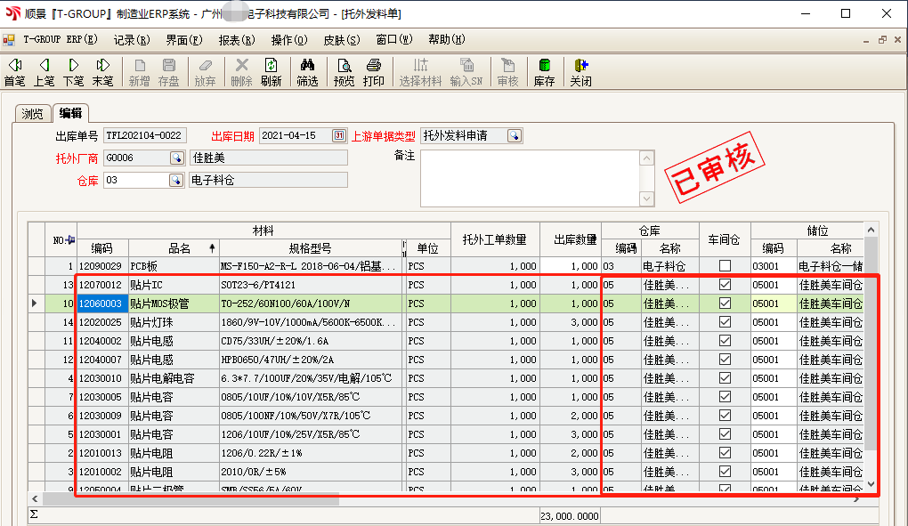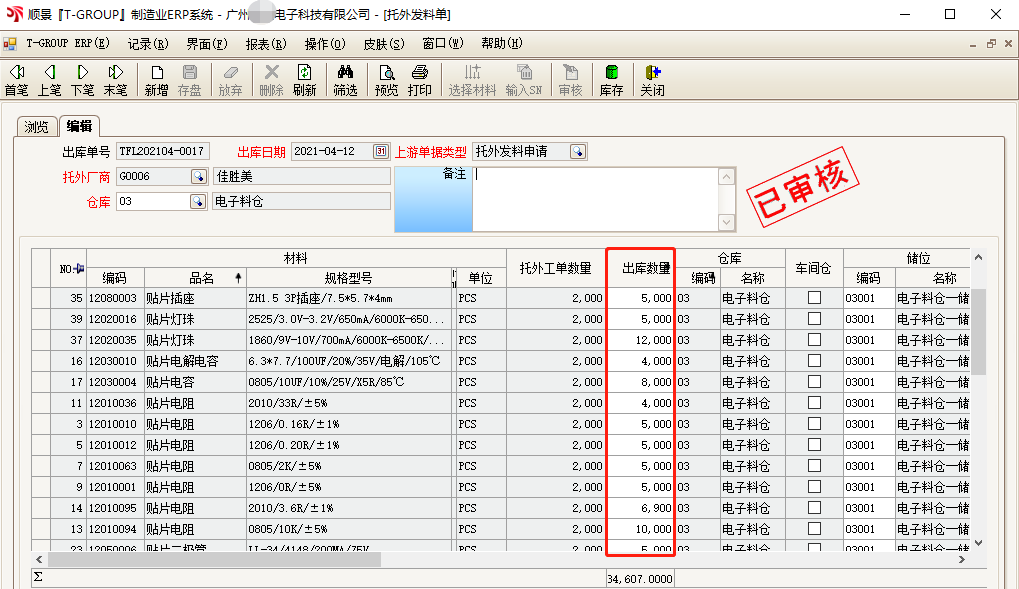 下面以電子行業貼片電阻、電容物料為例來說明順景T-GROUP ERP系統WIP線上倉之解決方案: