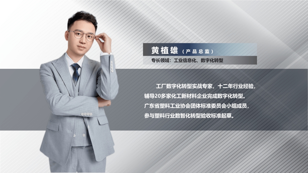隨后,由順景軟件產品總監黃植雄做了“新材料行業數字工廠系統整體解決方案“的主題報告。黃總從新材料行業的產業特性、痛點出發,介紹了順景的數字化工廠解決方案的核心優勢。