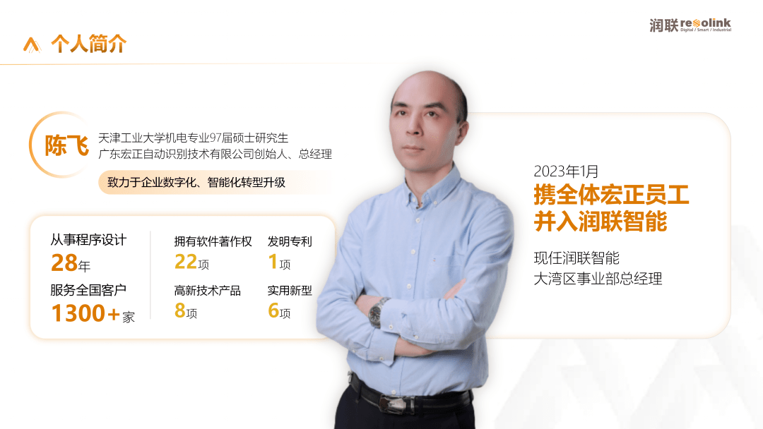潤聯智能科技股份有限公司大灣區事業部總經理陳飛介紹了潤聯智能作為智能工廠規劃及實施方的客戶案例及經驗。